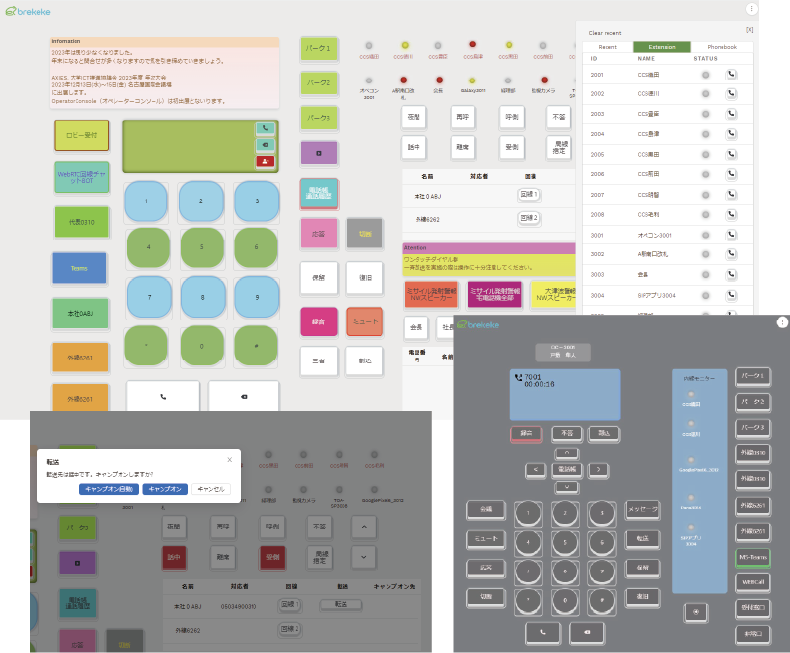 オンなどを自由に配置。PBXメーカーの大規模向け製品にラインナップされている『中継台』